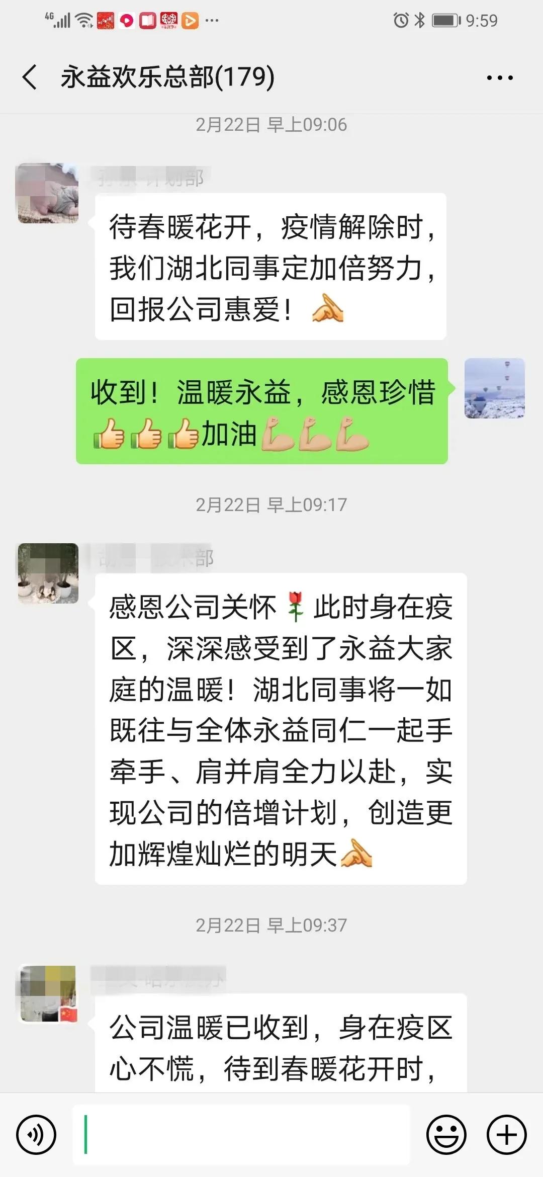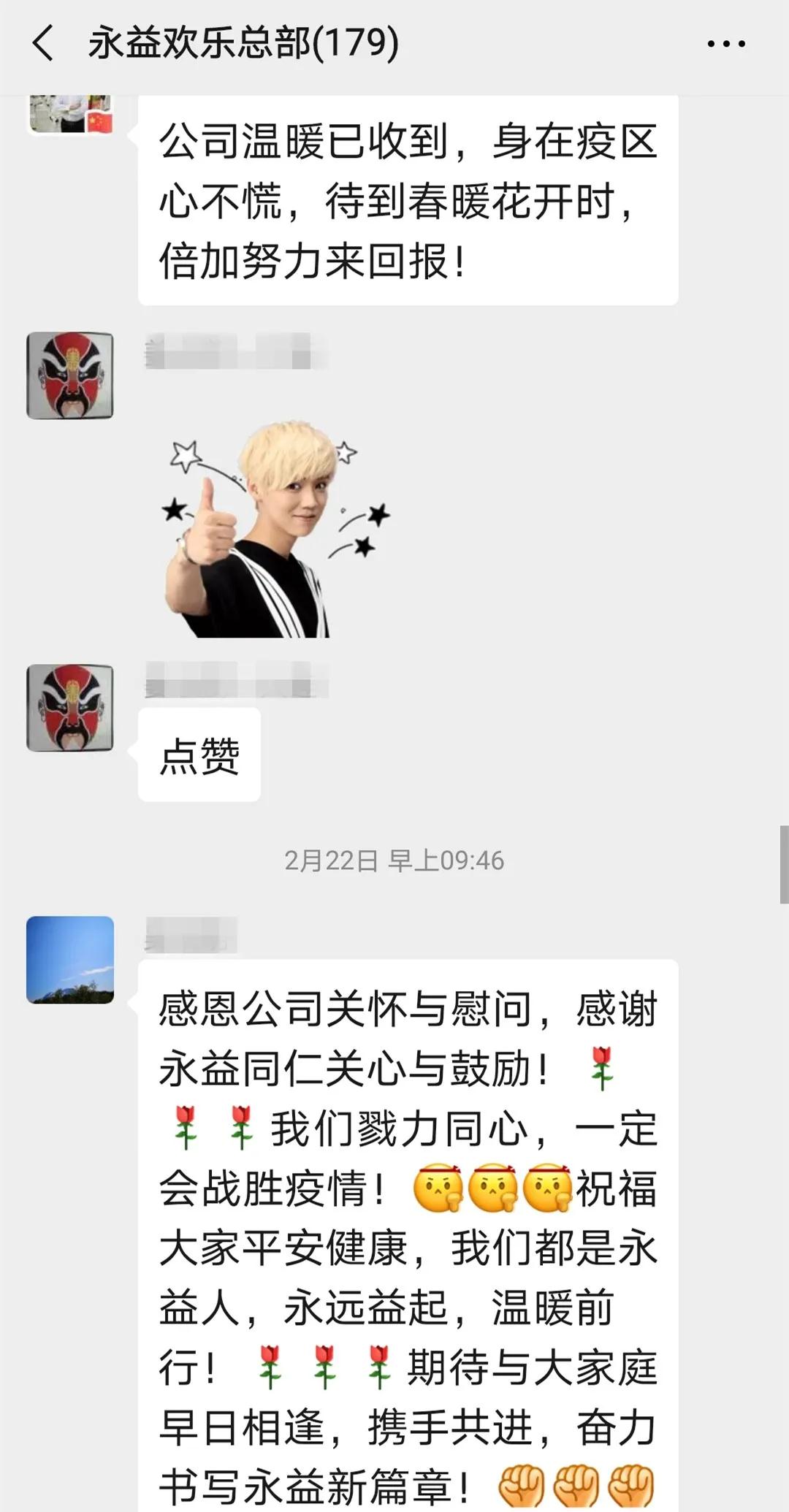 永益湖北籍全體同仁,正在湖北家鄉的你們,是公司心頭最深的牽掛,你們和家人的健康安全時刻牽動著永益全體人的心!永益愛心基金向全體湖北籍同仁每人轉出2000元愛心慰問金。